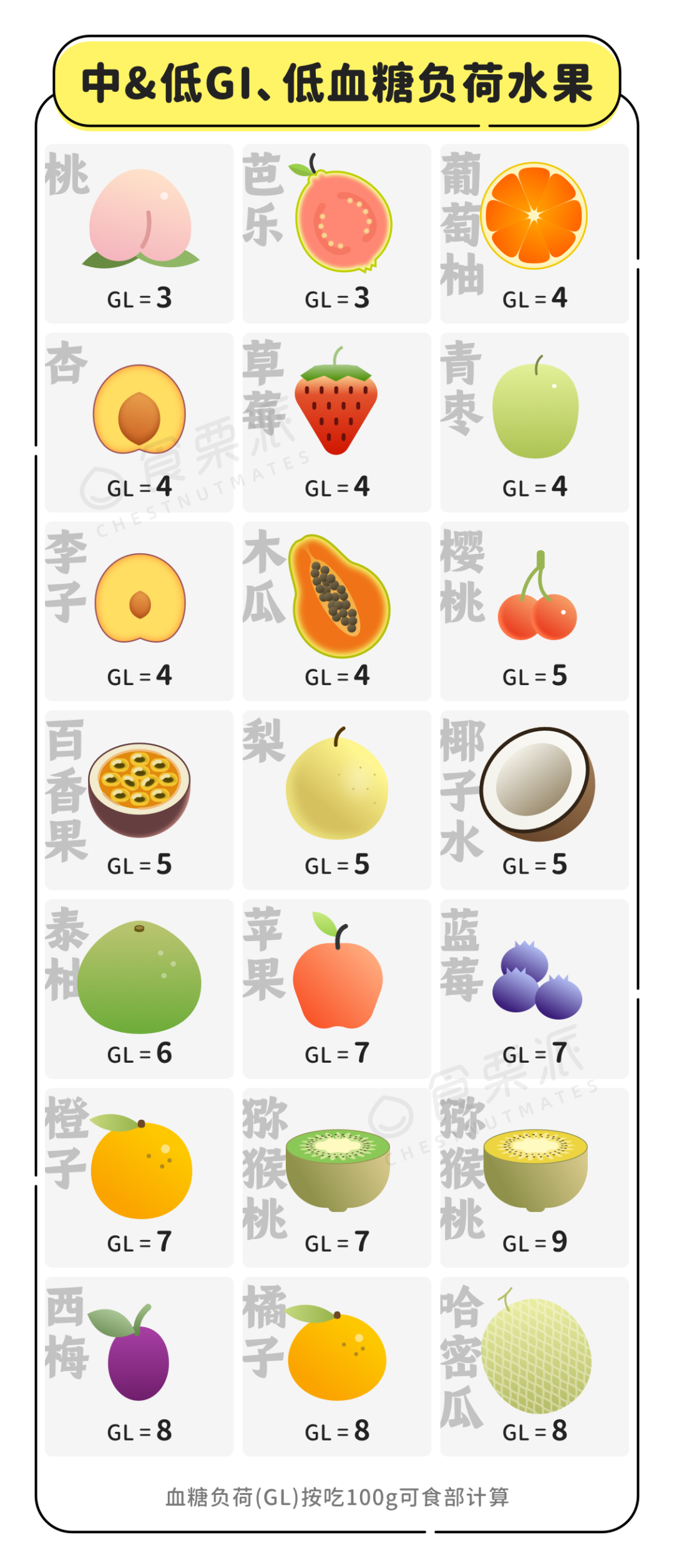 所以,除了血糖指數,還要看血糖負荷(GL值),這才是對水果血糖反應的更全面的評價方法。
