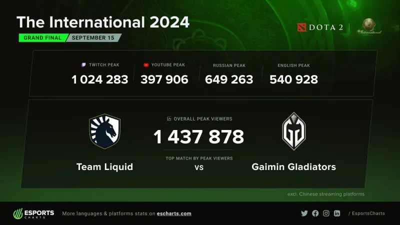 2024DOTA2國際邀請賽決賽外網觀賽峯值為143萬人次