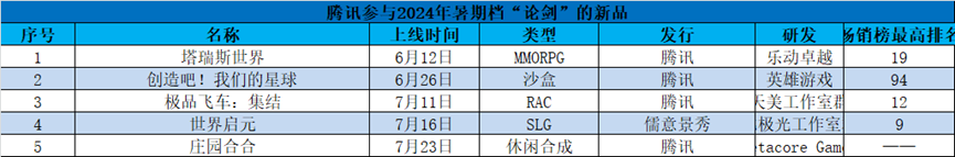 無論是《塔瑞斯世界》《極品飛車:集結》還是《世界啓元》都在各自賽道上缺乏足夠的競爭力,敗給已上線已久的競品,騰訊也因此淪為2024年遊戲史上最卷暑期檔中陪跑的角色。