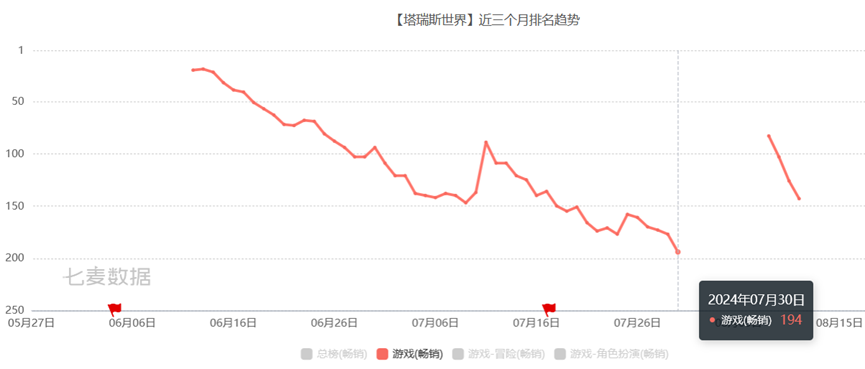 此次《塔瑞斯世界》雖然由騰訊發行,並歷經多次打磨與調優,上線後也一度衝至暢銷榜最高的19名,但隨着網易宣佈《魔獸世界》國服正式定檔8月1日後,《塔瑞斯世界》手遊的暢銷排名便一路下滑到了《魔獸世界》上線前一天的7月31日,《塔瑞斯世界》手遊便在暢銷榜上消失。至於《塔瑞斯世界》的端遊,由於它才是《魔獸世界》的真正競品,因此表現只會更慘。