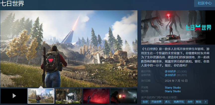 ▲圖:《七日世界》在Steam上獲得了“多半好評”的玩家反饋