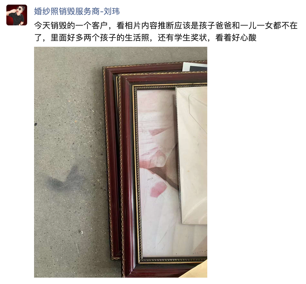 在視頻評論下,不斷有人表示“需要這項服務”。考慮過後,劉瑋決定將婚紗照銷燬作為主要業務內容。