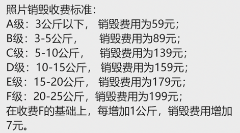 他將“銷燬費”定在59-199元之間,按照寄來物品重量的不同,分為七個檔,超過最高檔,每增加1公斤,銷燬費用增加7元。