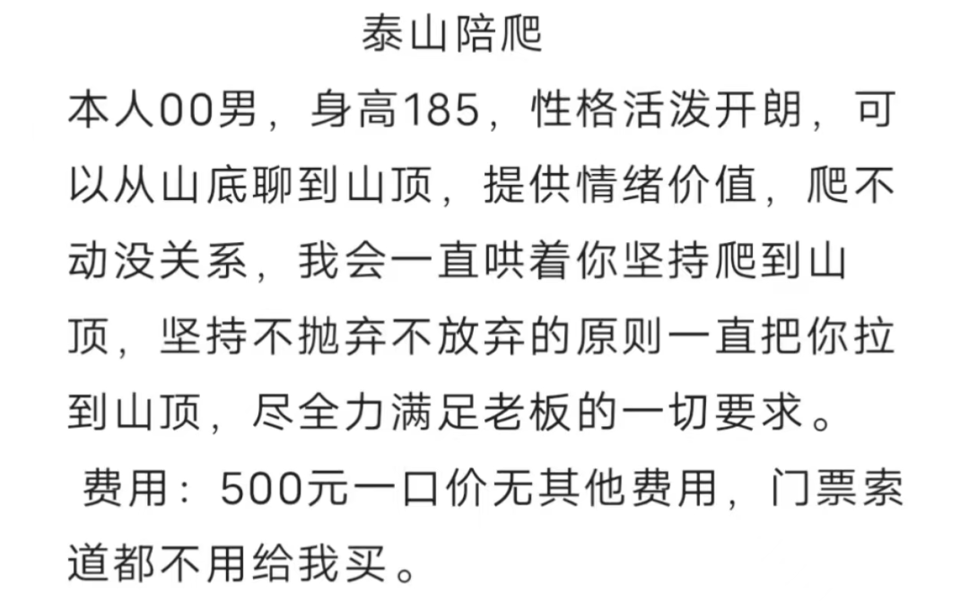 大學生新兼職:泰山陪爬!背娃喂水、拍照捶腿,200元一次情緒價值拉滿!_風聞