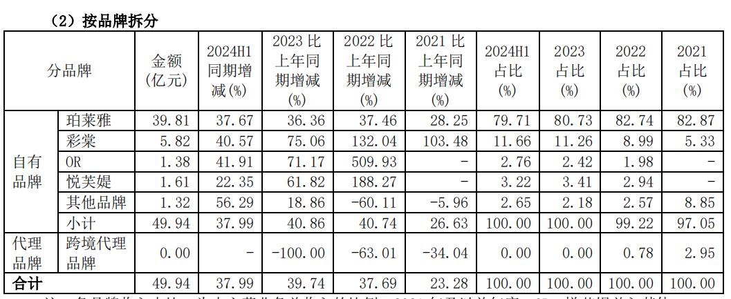 2024年上半年,珀萊雅實現營收50.01億元,同比增長37.90%。其中,主品牌“珀萊雅”創收39.81億元,貢獻度接近八成。