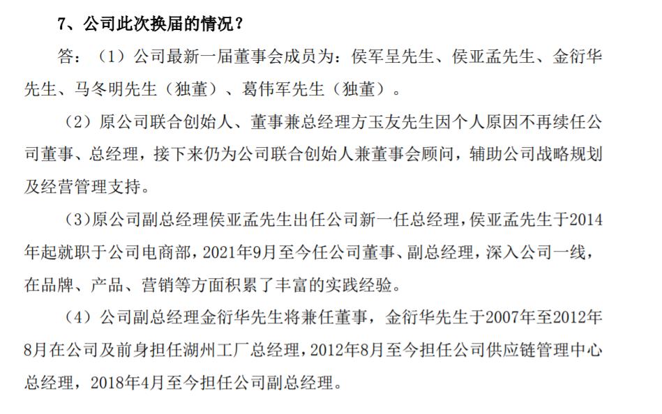原珀萊雅聯合創始人、董事兼總經理方玉友先生因個人原因不再續任董事、總經理,但仍將以聯合創始人兼董事會顧問身份,繼續輔助公司戰略規劃及經營管理支持。