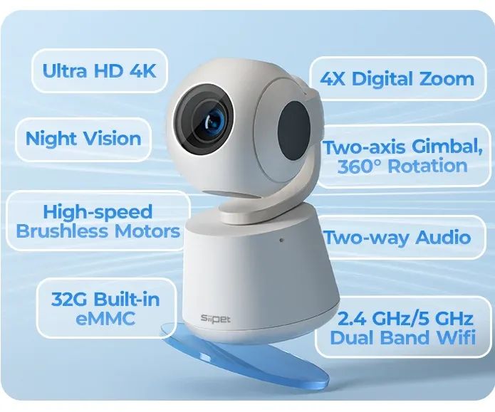 SiiPet 採用了 4K 高清技術,能夠清晰地捕捉寵物的每一個動作和表情。此外,SiiPet 的智能攝像頭在高速運動跟蹤方面表現出色,即使在寵物快速移動的情況下,攝像頭也能準確捕捉每一個細節,為主人提供高質量的視頻和圖像記錄,不會出現掉幀現象。