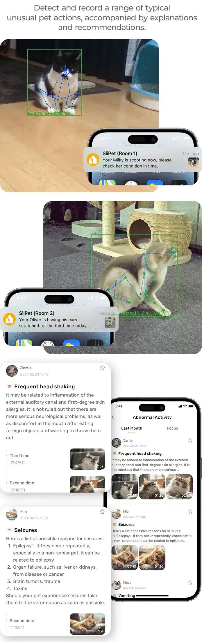 憑藉 95% 的識別率,SiiPet 能夠在檢測到這些異常行為後,迅速向主人發出警報,幫助他們提前發現並處理潛在的健康問題。