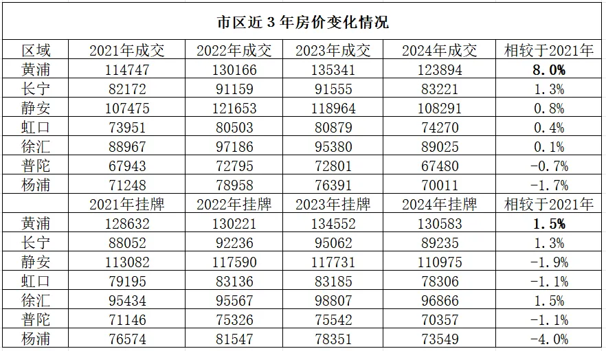 於是把各區的數據3年房價拿出來對比,黃浦果然遙遙領先