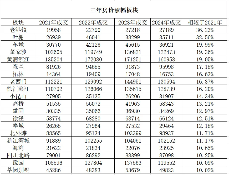 直到我把數據拉出來後,才發現如果把三年當作一個週期,上海這些板塊的價格不跌反漲了
