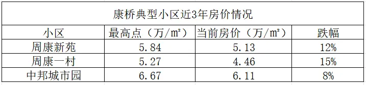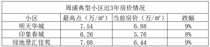 周浦幾個典型小區的跌幅和3年來最高點相比,跌幅僅有8-9%,這種行情放在整個浦東也都是非常抗跌的