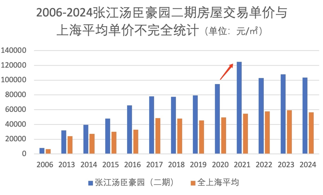 而作為純商品房產品的張江湯臣豪園,成為板塊內少有的改善產品,一直到今天,其稀缺屬性依然無可替代
