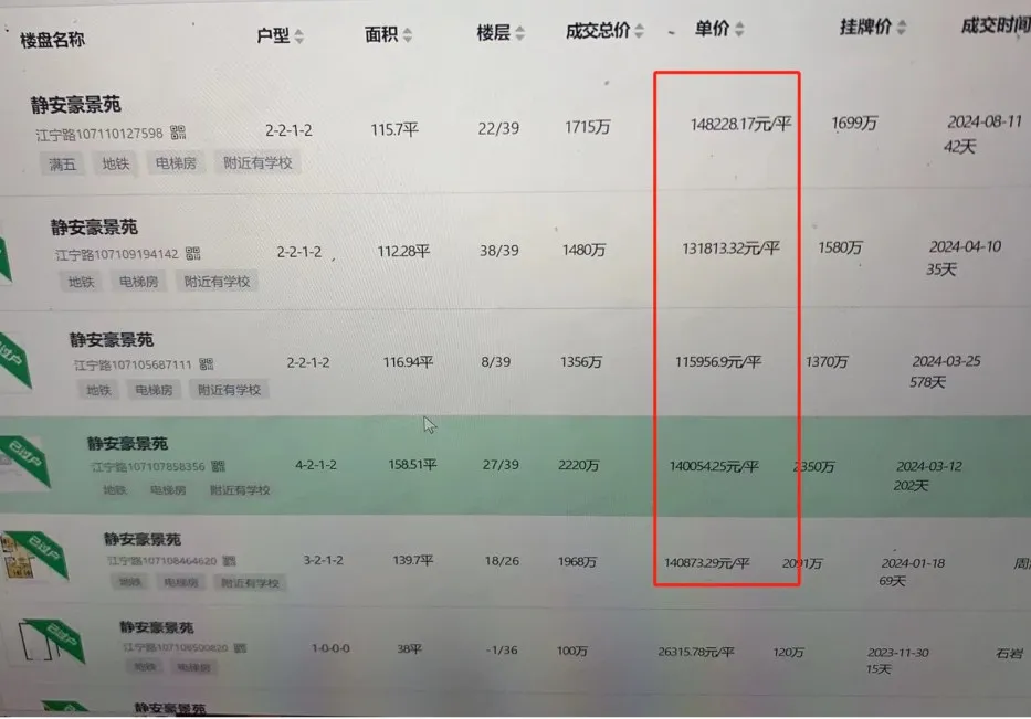 24年,靜安豪景苑的2房成交價格依然保持在13-14萬/㎡間,非常穩定
