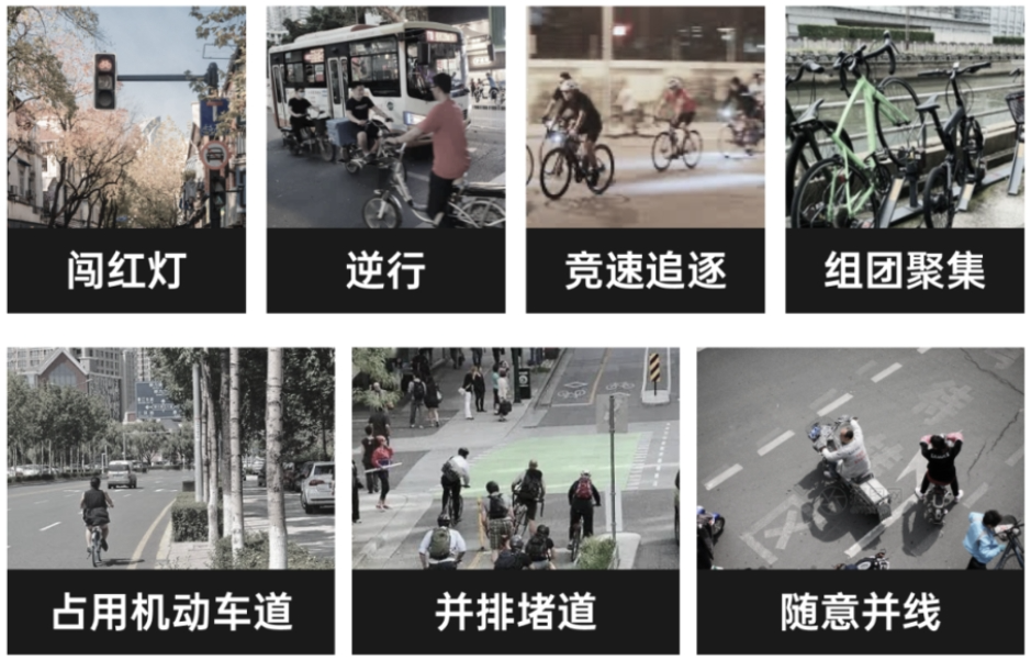 闖紅燈、佔用機動車道、競速追逐、逆行……部分騎手違法交規的行為不一而足。有時甚至幾十輛自行車浩蕩前行,只顧着追逐速度與激情,以至於得到了“暴騎團”的稱號。