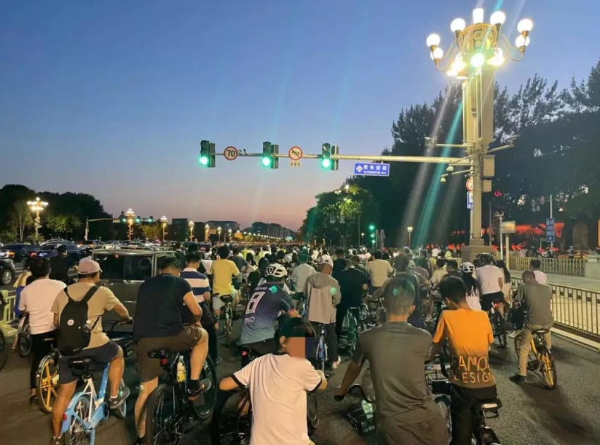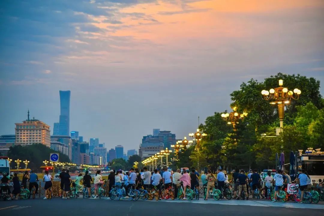 比如北京長安街,不僅路面平坦寬闊,還區分了機動車和非機動車道,而且途徑數個重要地標,極具誘惑力,因此每到夜騎高峯期幾乎都會“堵車”,公路車、山地車、旅行車、摺疊車、共享單車,應有盡有。