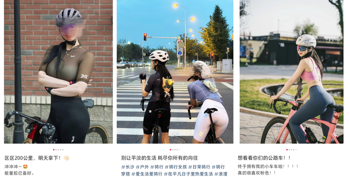 一個女性騎手,如果大腿不夠粗壯,騎行的距離和強度沒達到某些人的標準,愛凹造型愛拍照,又或者進行了一番穿搭、化妝,就很可能被貼上“騎媛”的標籤,要麼是跟風來湊熱鬧,要麼就是來釣有錢的男騎手。