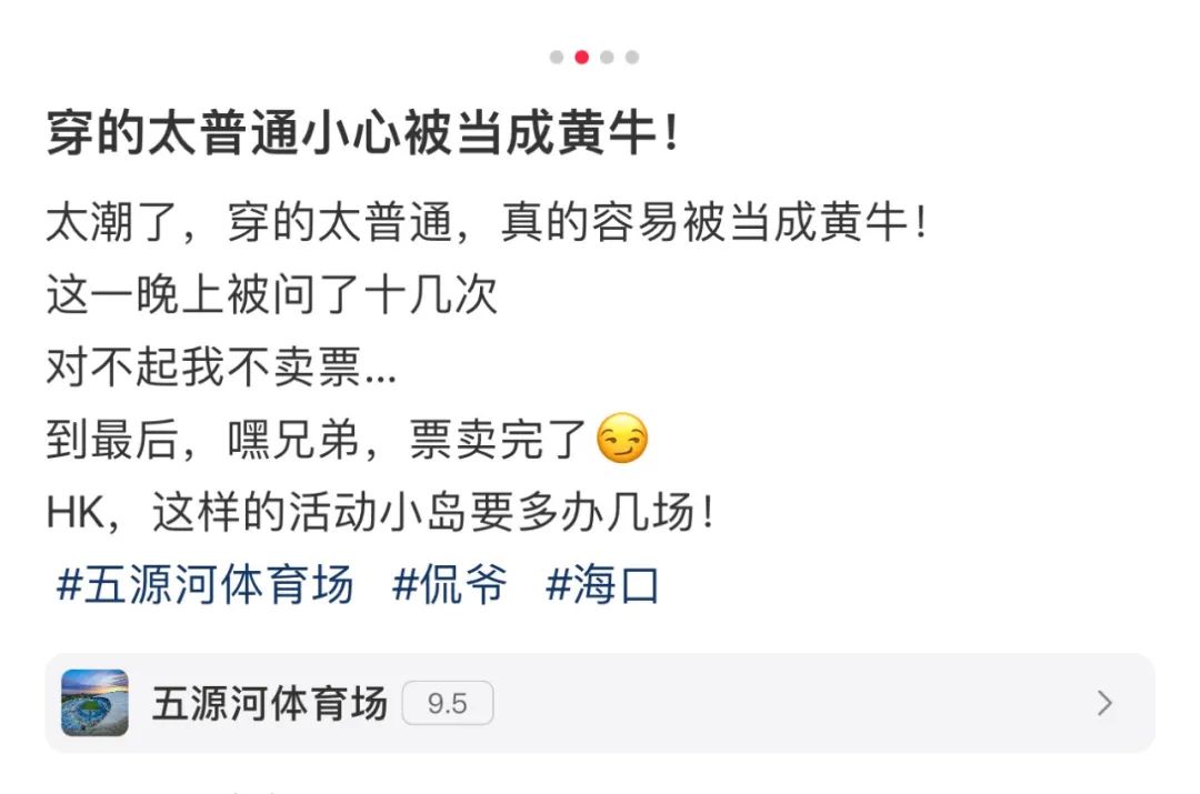蘇蘇是9月14日到海口的,他同飛機上的“含YE量”超高,“幾乎都是我這種穿迷彩褲,大靴子的男孩,大家彼此瞟一眼就知道對方是去看演唱會的。”海口機場裏的“潮人”紛紛湧入海口各大酒店,社交媒體上曬出海口的“潮人”密集度也超高,導致穿着普通的觀眾,被當了成黃牛。