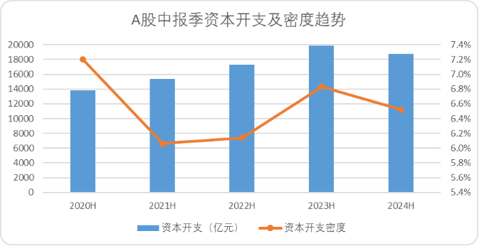 圖:A股中報季資本開支及密度趨勢,來源:Choice金融客户端,錦緞整理