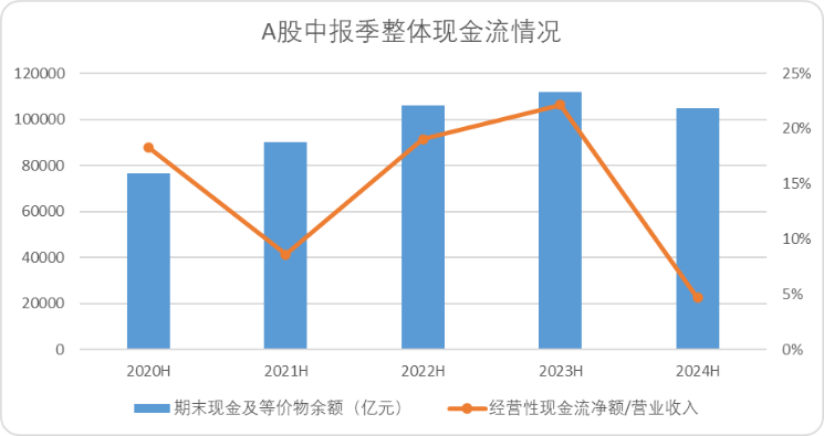 圖:A股中報季整體現金流趨勢,來源:Choice金融客户端,錦緞整理