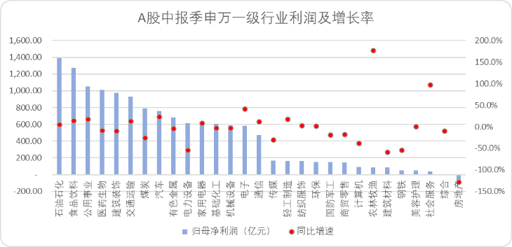 圖:中報季申萬一級行業利潤及增長率,來源:Choice金融客户端,錦緞整理