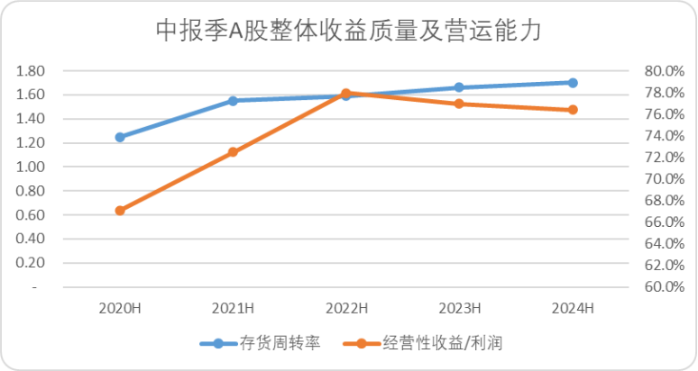 圖:A股中報季收益質量及存貨週轉率趨勢,來源:Choice金融客户端,錦緞整理