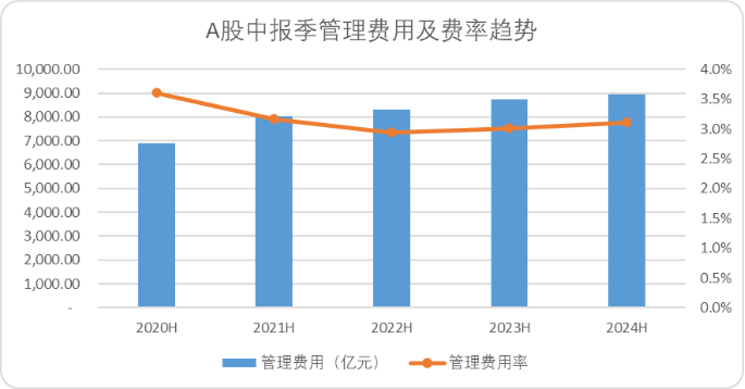 圖:A股中報季管理費用及費率趨勢,來源:Choice金融客户端,錦緞整理