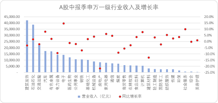 圖:中報季申萬一級行業收入及增長率,來源:Choice金融客户端,錦緞整理