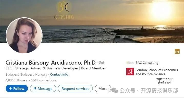 簡而言之,BAC就是一家摩薩德的幌子公司,僅以網頁形式存在。在這一點上,也不得不質疑克里斯蒂安娜·阿爾西迪亞科諾·巴索尼是否真的存在。但值得注意的是,巴索尼是匈牙利一個著名的猶太姓氏。