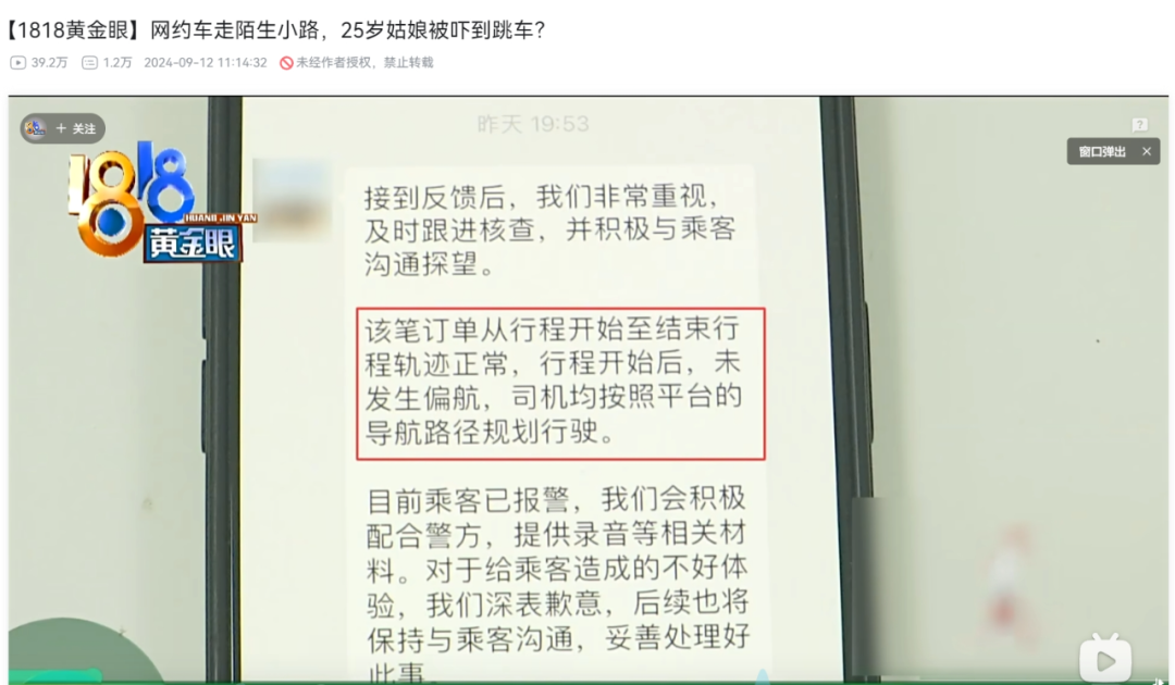 他們直接詢問了打車平台,發現全程並未偏離規劃路線,這個路線就是女生自己選的路線。