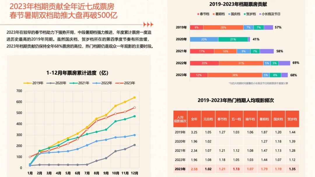 從上映時間來看,由於中國電影市場票房有很大的檔期依賴症,據燈塔數據,2023年檔期貢獻仍保持全年68%票房的高位,熱門檔期是觀眾一年觀影的主要時段。重映片可以嘗試從平常週末檔入局,不搶佔熱門檔期,避免與新片撞檔期。