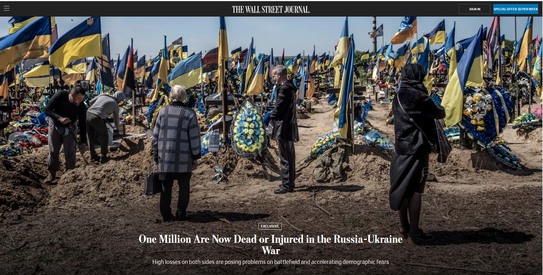 美媒《華爾街日報》最新消息稱根據西方情報部門的統計顯示,在俄烏戰場中,烏軍的損失大約有8萬名士兵死亡,另外還有超過40萬人受傷。而於此同時俄羅斯武裝部隊死亡人數為20萬人,受傷人數為40萬人。這個消息可能有些人認為可信,畢竟有西方主流媒體及西方情報部門背書。