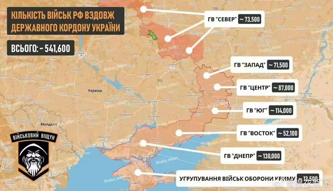 有份數據我們能看出一二,在2024年7月左右烏克蘭官方評估俄羅斯軍隊在特別軍事行動區的兵力為541600人,並且烏克蘭武裝部隊司令部預測到2024年年底俄軍將增加到80萬。瑞典退役軍官米凱爾·瓦爾特森認為在烏克蘭部署100萬俄羅斯士兵可能就足夠了,因為烏克蘭將很難維持目前的兵力水平。這將使俄軍在2025年在前線擁有2.5:1的優勢。