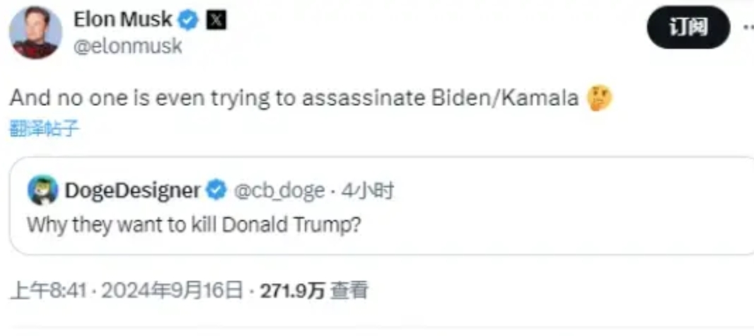 兩個刺殺特朗普的兇手都出現在貝萊德基金會接管烏克蘭資產的廣告中,這樣的概率真的很低。馬斯克直接在自己的社交媒體上就發問:為什麼從沒有人嘗試暗殺拜登或者哈里斯?值得注意的是這次的刺殺者更是與烏克蘭緊緊綁在了一起。