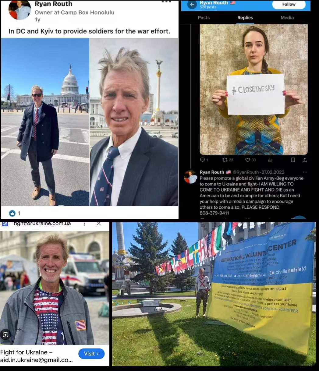 企圖刺殺特朗普的狂熱烏克蘭支持者瑞安·勞思曾經參加了烏克蘭的僱傭軍,他瘋狂熱愛和支持敍利亞叛軍,烏克蘭軍隊,乃至中國台灣省軍隊。他曾試圖組織烏克蘭的敢死隊員偷渡進入俄羅斯,實施恐怖襲擊但遭遇失敗。他試圖用自殺性無人機刺殺普京胎死腹中。