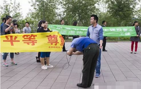 當視頻轉播到網上的時候,愛狗人士們人肉搜索,QQ微信、家庭住址、單位信息。然後一波接一波的信息轟炸、人身威脅,要求王先生向狗下跪。兒子、家人、自己,見一次打一次!為保護家人安全,無奈之下,王先生逼迫向狗鞠躬道歉。