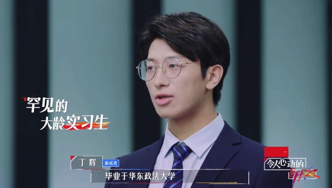 《令人心動的offer 2》裏,30歲的丁輝本科是二本非法學專業,後跨考華東政法大學碩士,在律所工作一年後裸辭,並以倒數第一名的成績入選君合律師事務所實習生。