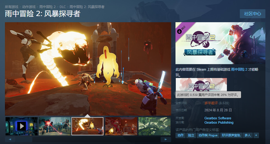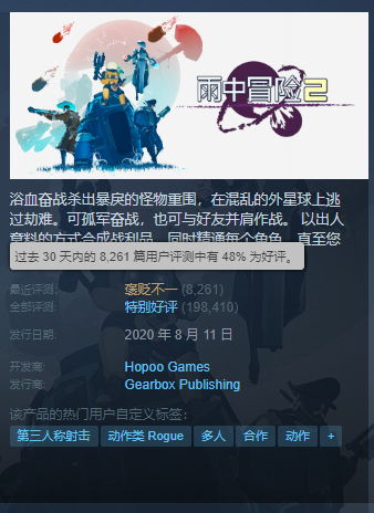 結果《雨中冒險2》本體的近期好評率也被拖累到了“褒貶不一”的水平。