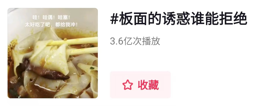 在抖音等社交平台上,有超過200多萬人在討論這款板面的最佳吃法,包括泡水時長、温度、甚至伴侶搭配等等,甚至捧出了播放量超3.6億的 #板面的誘惑誰能拒絕# 抖音熱門話題。