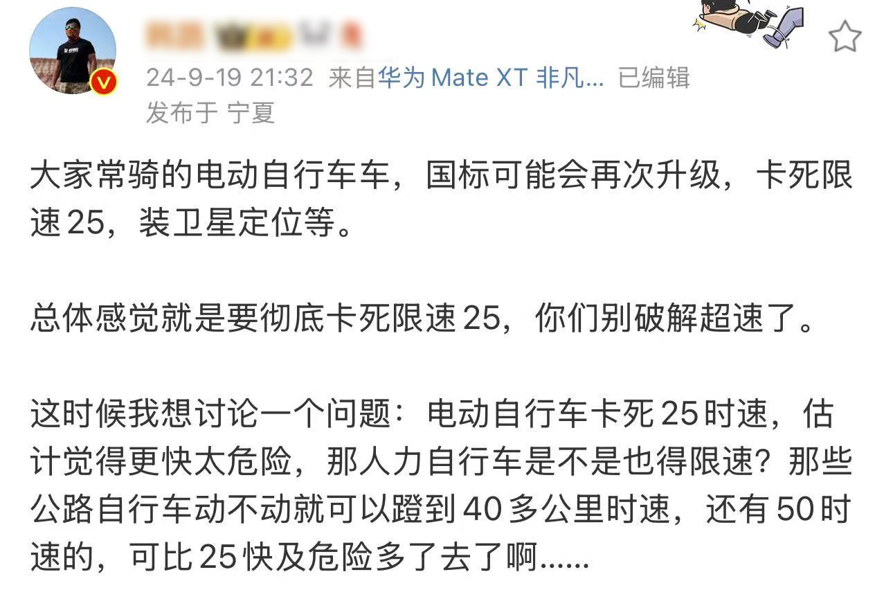電動自行車卡死25時速,估計覺得更快太危險,那人力自行車是不是也得限速?那些公路自行車動不動就可以蹬到40多公里時速,還有50時速的,可比25快及危險多了去了啊……