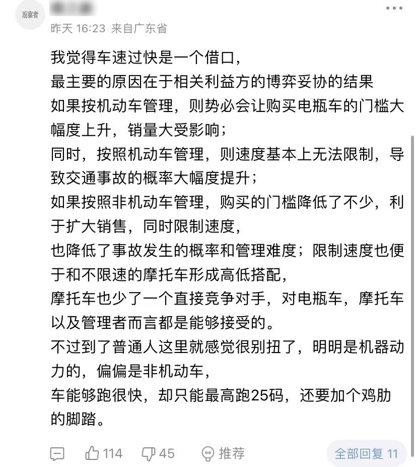 有網友認為限速不僅出於安全考慮,還可能是相關利益方博弈妥協的結果。