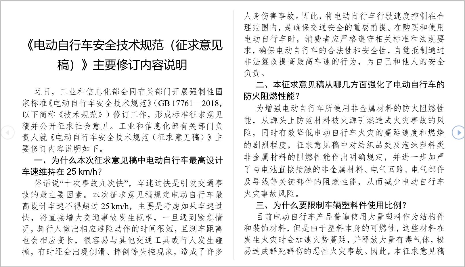 9月19日,工業和信息化部會同公安部、應急管理部等多部門,對最新修訂的《電動自行車安全技術規範》進行公開徵求意見。