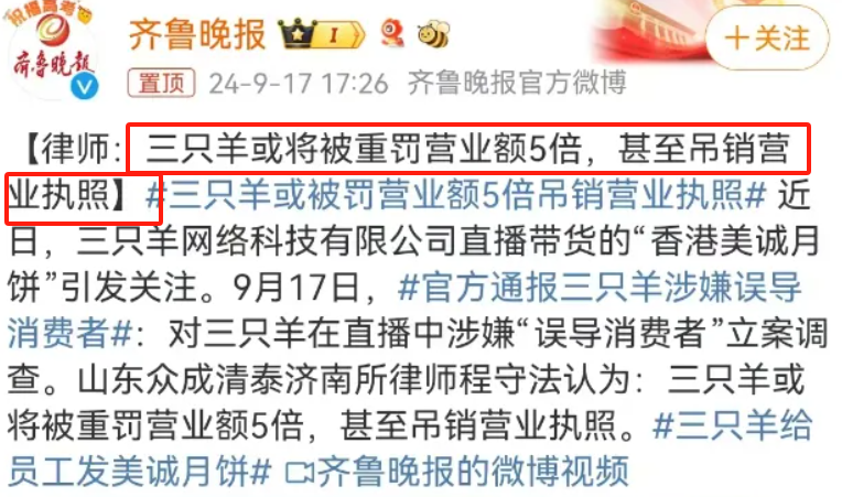 2023年,“三隻羊”發佈的視頻中,自稱“去年一場直播賣了10萬單”。也就是説,“三隻羊”已連續三年售賣香港美誠月餅。