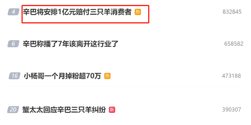 辛巴宣佈不賣大閘蟹又賠付網友的舉動,瞬間衝上了熱搜。而依然再賣大閘蟹的小楊哥直播間,這時候已經好感大跌。