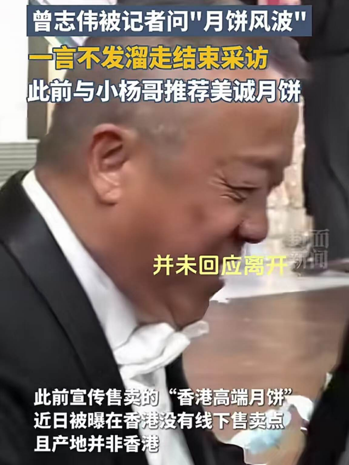 當曾志偉在港姐決賽的現場上被問及美誠月餅事件時,他裝作沒有聽見問題匆匆離場。