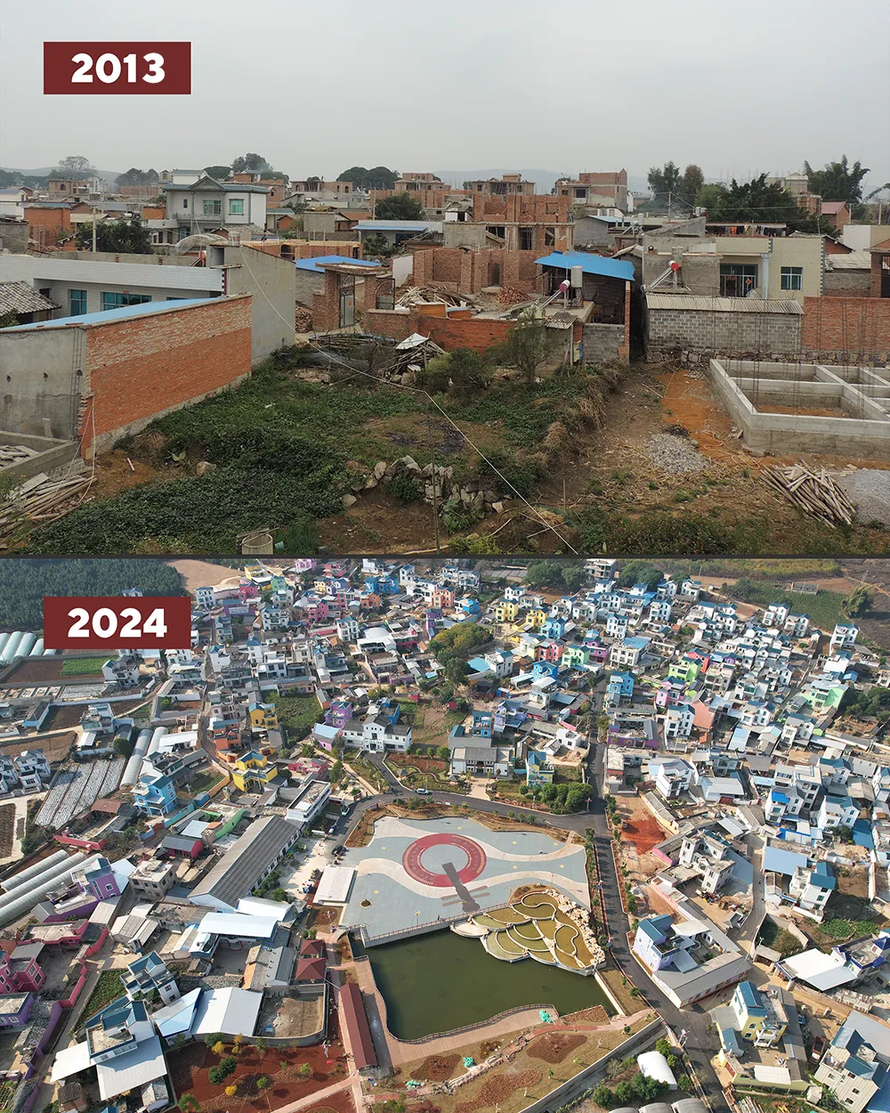 ▲10年時間,雲南省紅河州開遠市的黑泥地社區蝶變成為“環境美、產業興、羣眾富”的“七彩社區”。