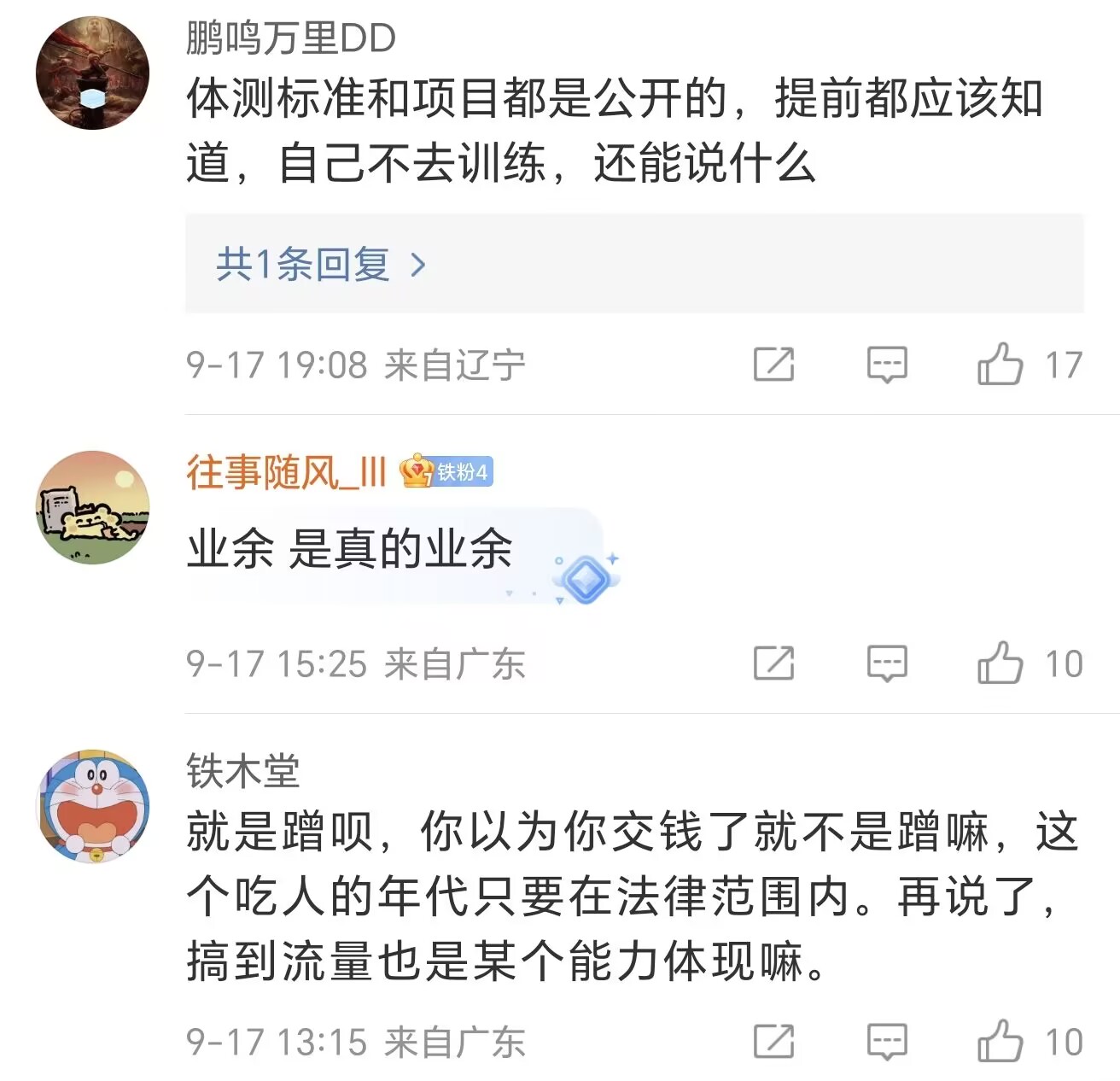 結果在體測當天的4組折返跑中,楊政第一組成績為59秒81,第二組成績為70秒72,兩組17折後,楊政再也無力支撐剩下兩組測試選擇放棄,最終沒有成績。