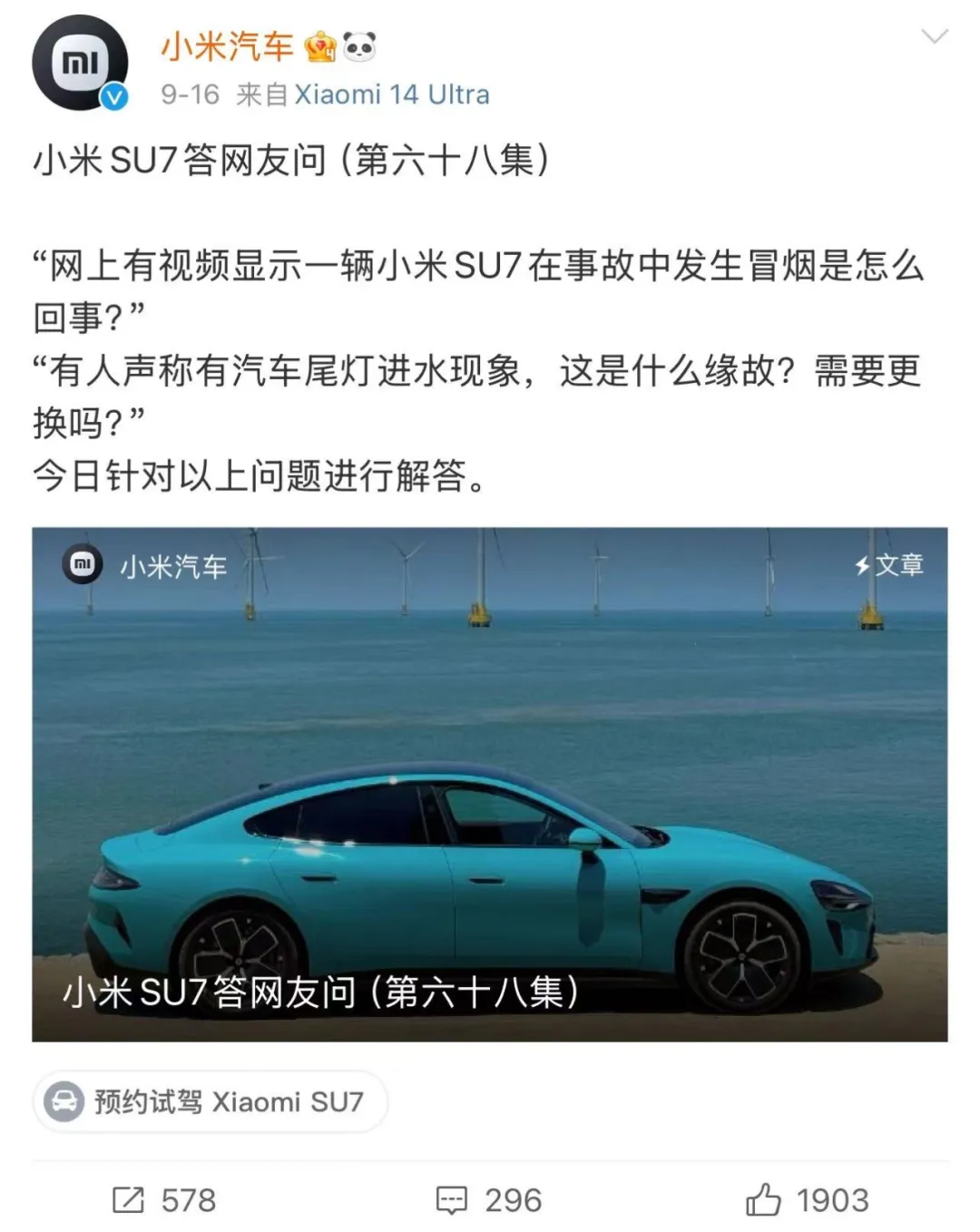 事後第一時間,小米汽車官方作出的回應成功安撫了大多數消費者的心。但須知,安撫不意味着顧慮解決,杜絕再次發生此類事故才是最優解。
