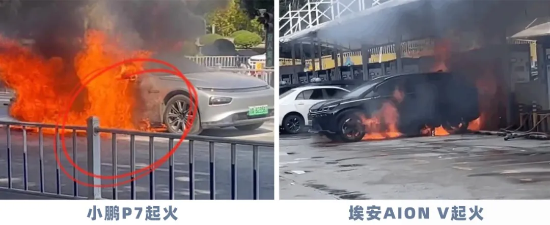 但,**當這些擁有漂亮試驗結果的電池投入“實戰”,似乎就經不起“推敲”了。**舉例來看,2023年1-9月,小鵬P7發生了7起自燃事件;2024年8月,深圳,一輛處於充電狀態的廣汽埃安AION V底盤電池包突現明火,隨後幾秒時間內爆燃。