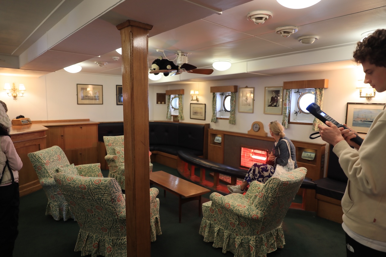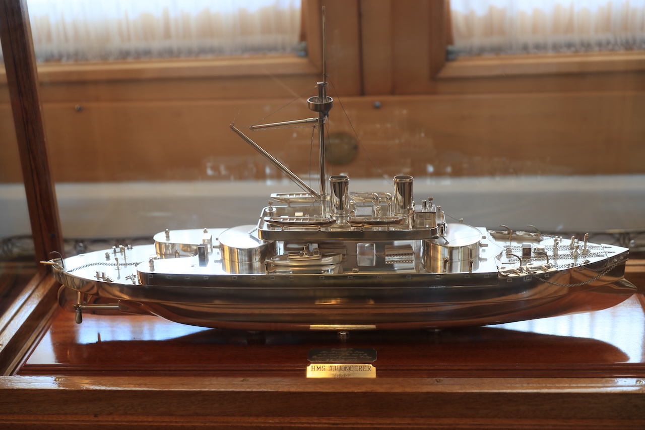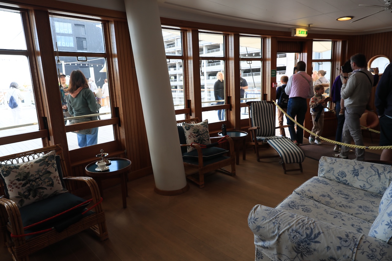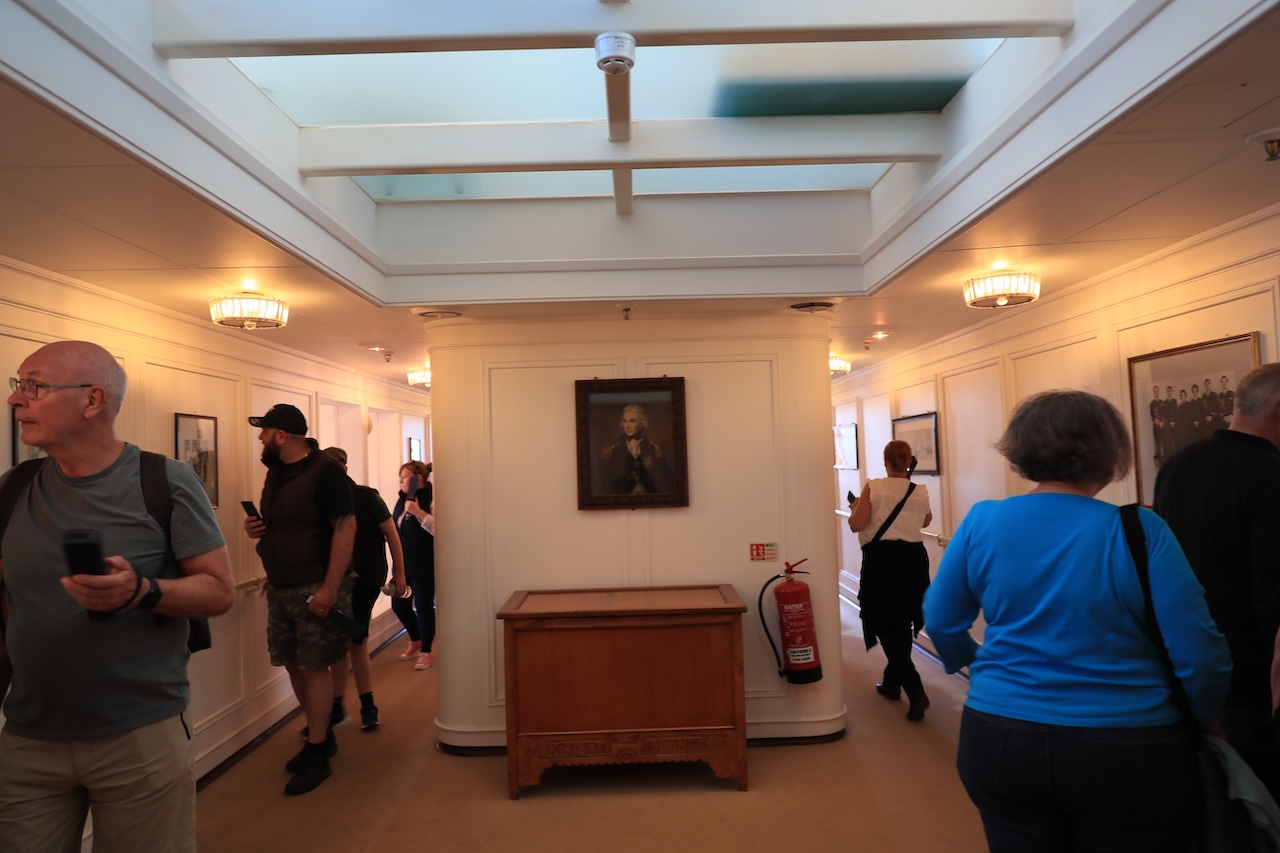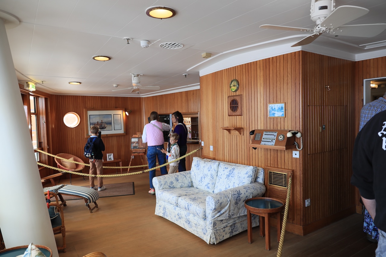 皇家艙室在後半段,尾廳面對寬大的後甲板,這個白東西是從維多利亞女王的遊艇上搬過來的