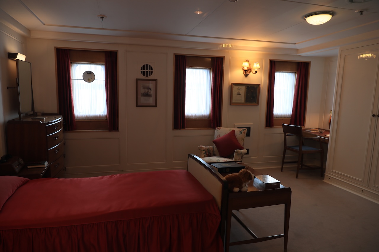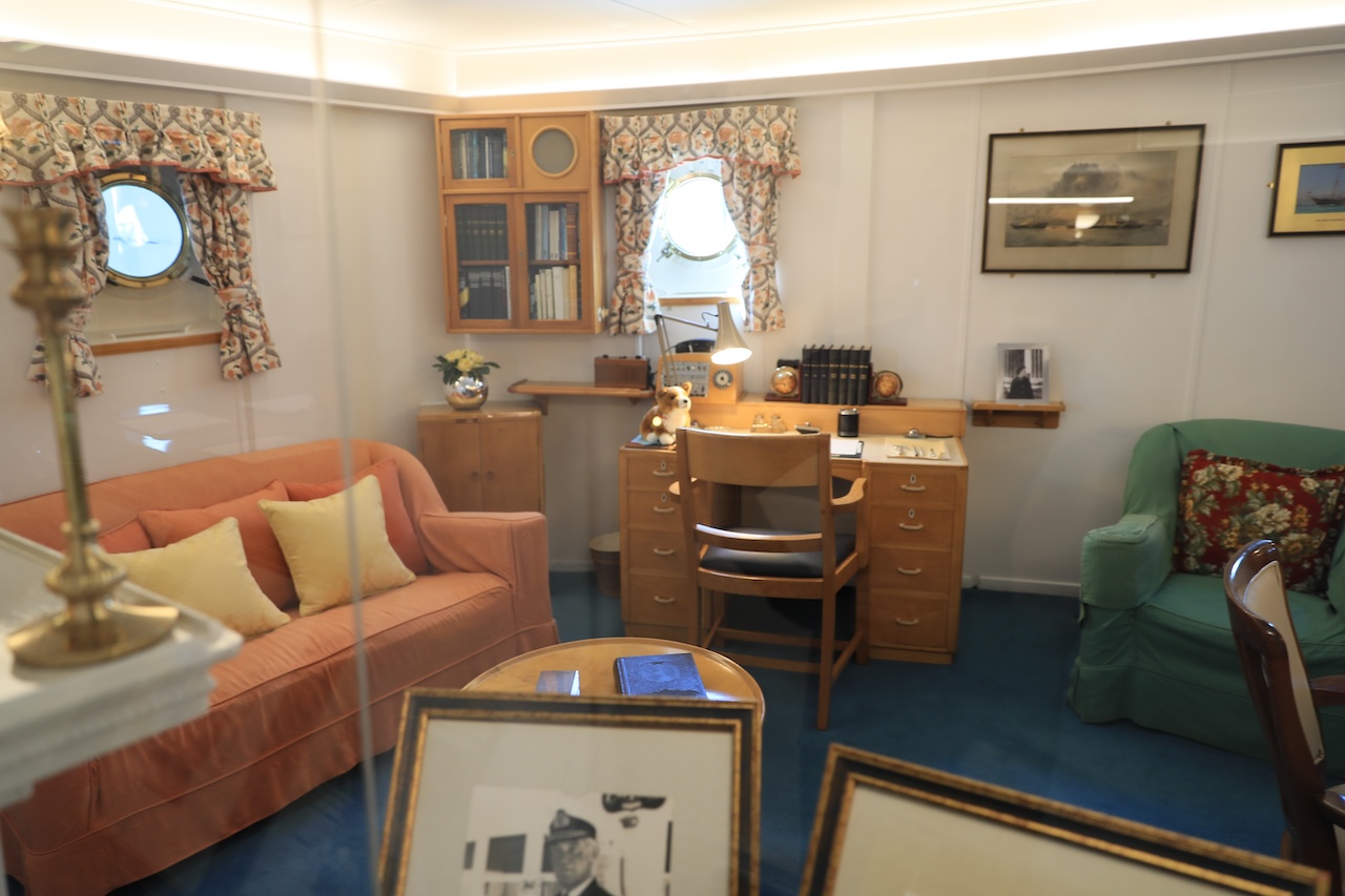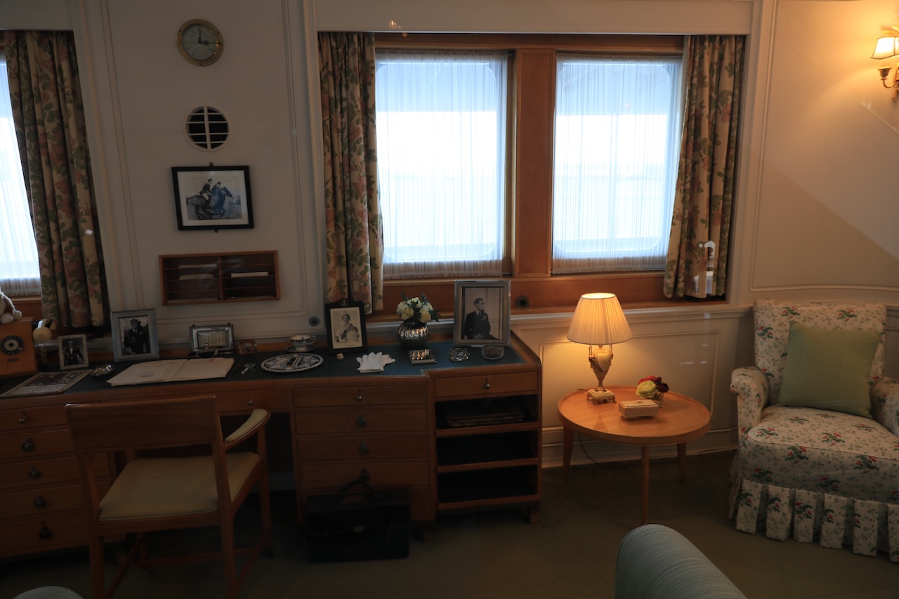 女王艙室在右邊,菲利普和貴賓艙室在左邊。這女王也心大……